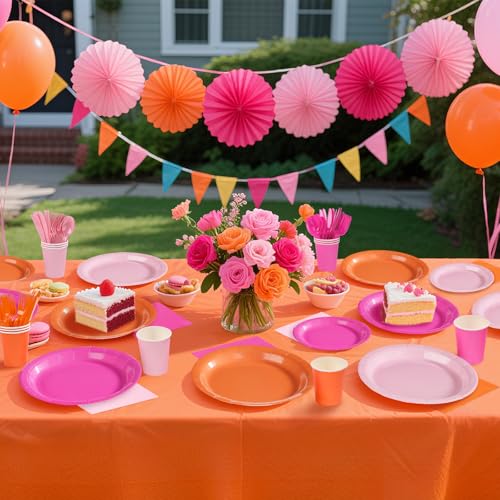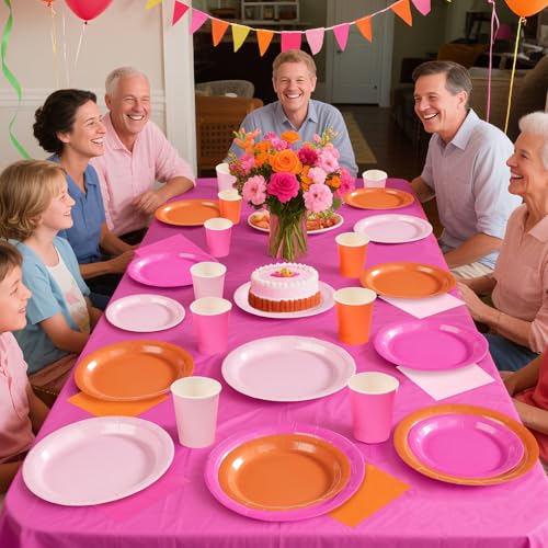 Elevate your celebration with the Grencian 171-Piece Pink & Orange Party Set. This comprehensive collection features plates, napkins, cups, forks, and a tablecloth in a stunning sunset-inspired palette of pink, orange, and hot pink. Perfect for birthdays or any festive gathering, this vibrant theme evokes the warm, lively energy of a tequila sunrise, creating a cheerful and memorable atmosphere. Everything you need for a coordinated and stylish event is right here in one convenient kit.