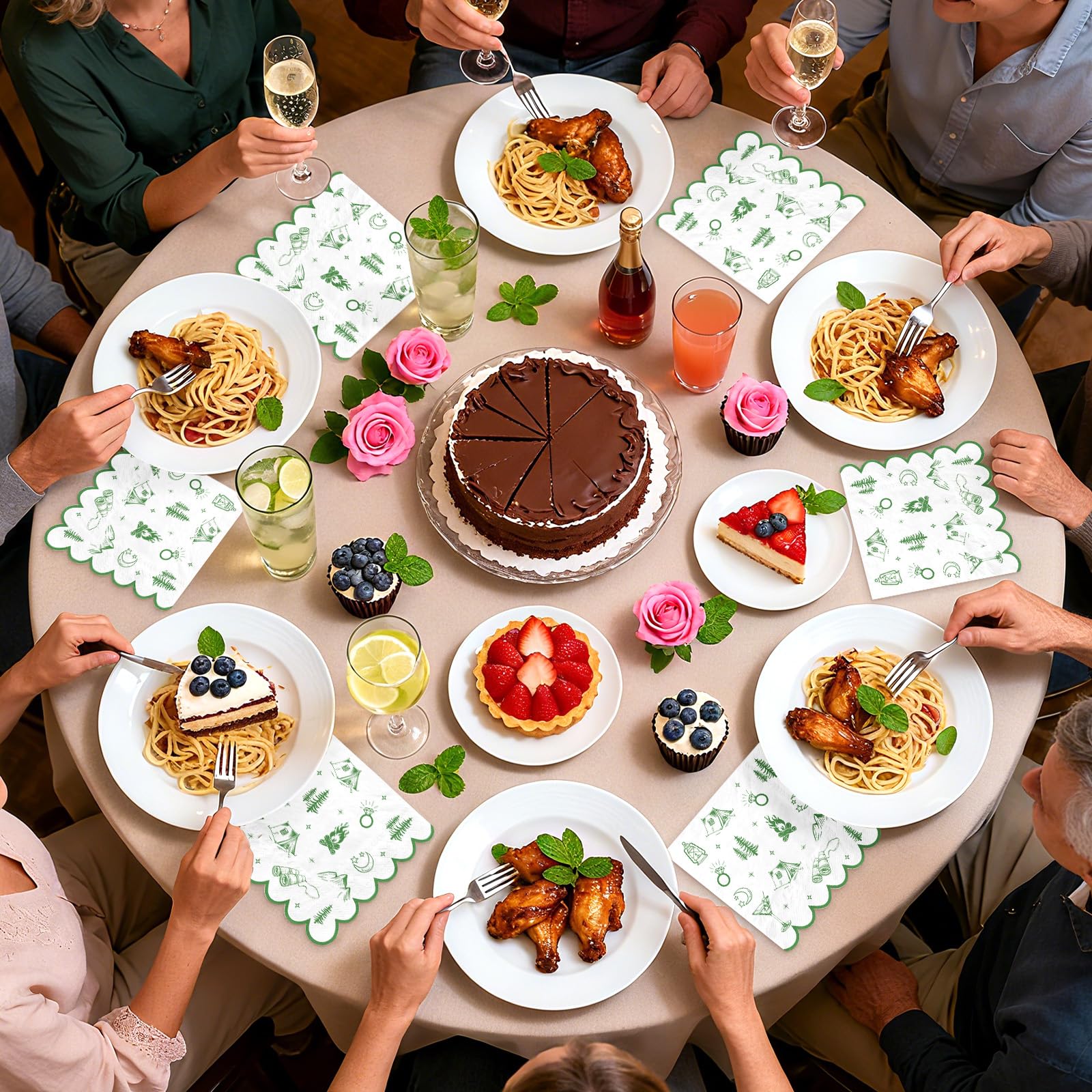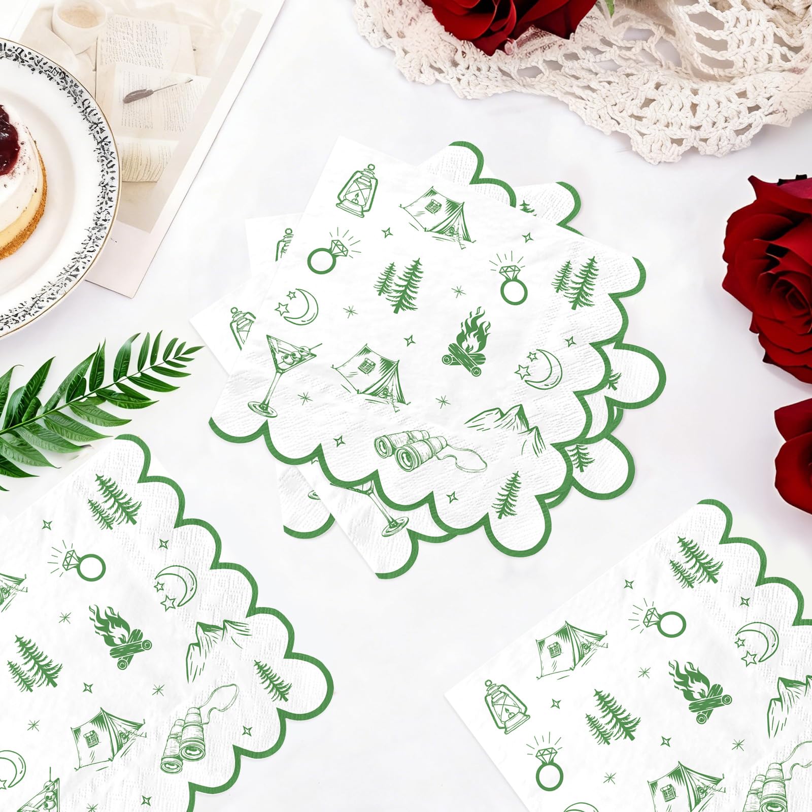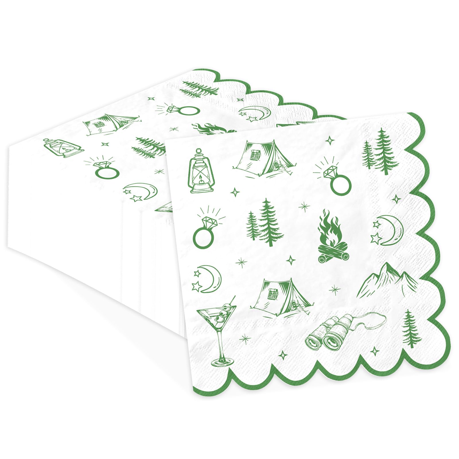 These napkins transform ordinary parties into memorable camp bachelorette adventures. The green camp bachelorette pattern blends soft colors with playful elements like diamond rings amid wilderness scenes, appealing to brides-to-be loving rustic glamour. Stock up on this large capacity set for hassle-free hosting—whether glamping in the backyard or a full forest getaway.