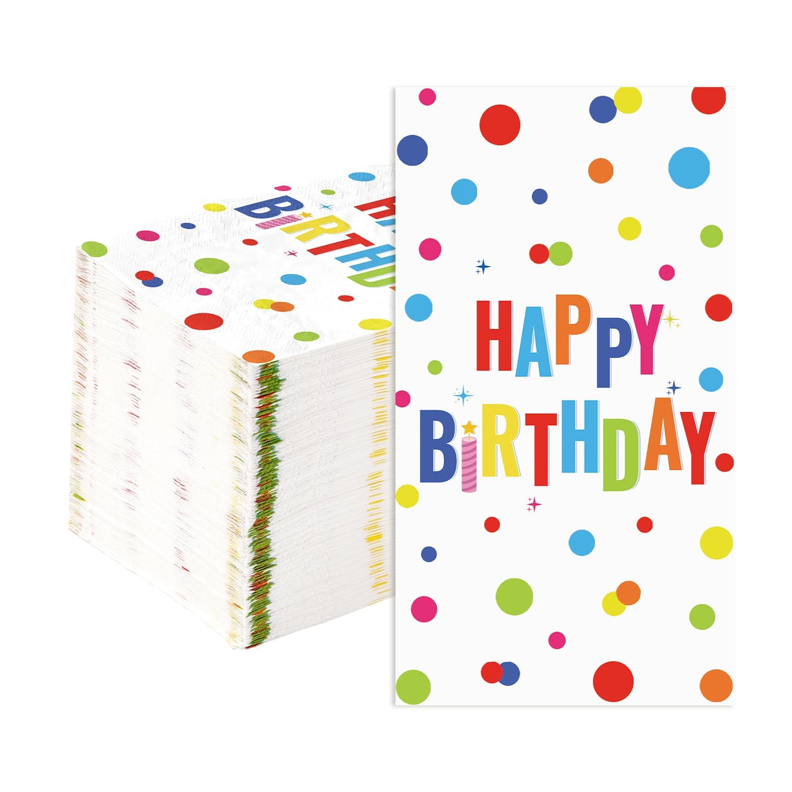 Celebrate in style with Grencian's 100-count pack of 3-ply birthday napkins! Featuring a vibrant, festive design with scattered colorful dots and cheerful "Happy Birthday" lettering, these napkins are the perfect way to add a pop of color and joy to your party. Their unique and lively design instantly enhances the celebratory atmosphere of any birthday, making your event even more special. Practical and durable with 3-ply construction, they are perfect for cakes, drinks, and cleanup. Make your birthday celebration unforgettable with Grencian's colorful dot napkins!