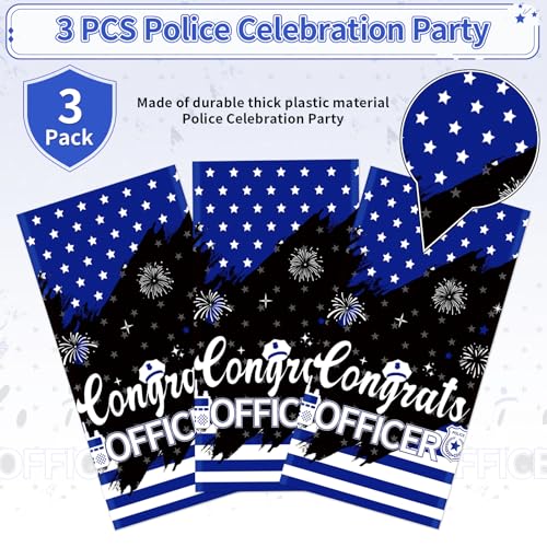 Celebrate your graduate's incredible achievement with the Grencian 3Pcs Police Academy Graduate Party Tablecloth Set! This exclusive set features an exciting law enforcement theme, intricately printed with "Congrats Officer" and classic police elements. Designed to immerse your party in the spirit of celebration, these tableclorns instantly create a vibrant and proud atmosphere. Perfect for the reception table, cake table, or as photo backdrops, they add a special, meaningful touch to your milestone event, making the graduate feel truly honored.