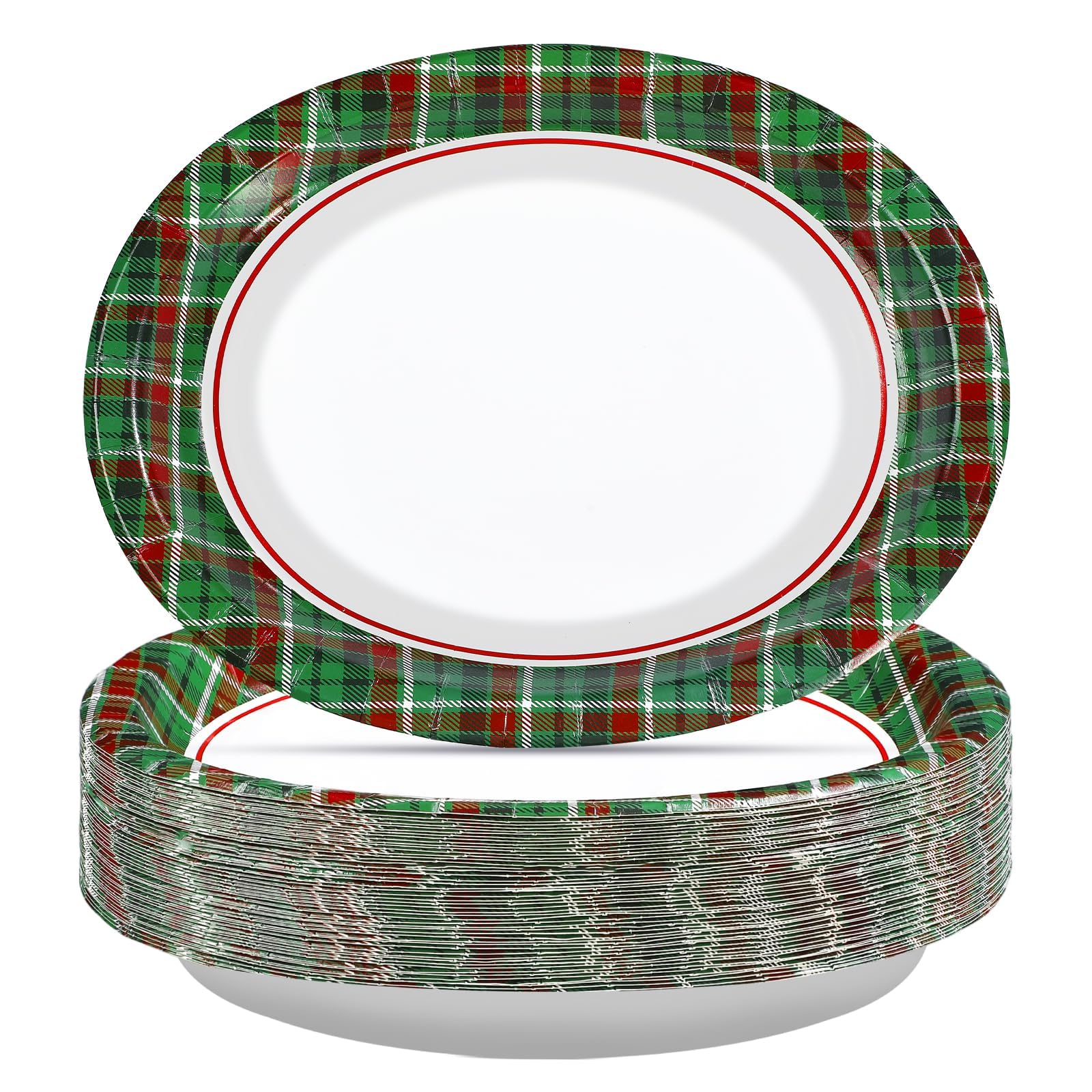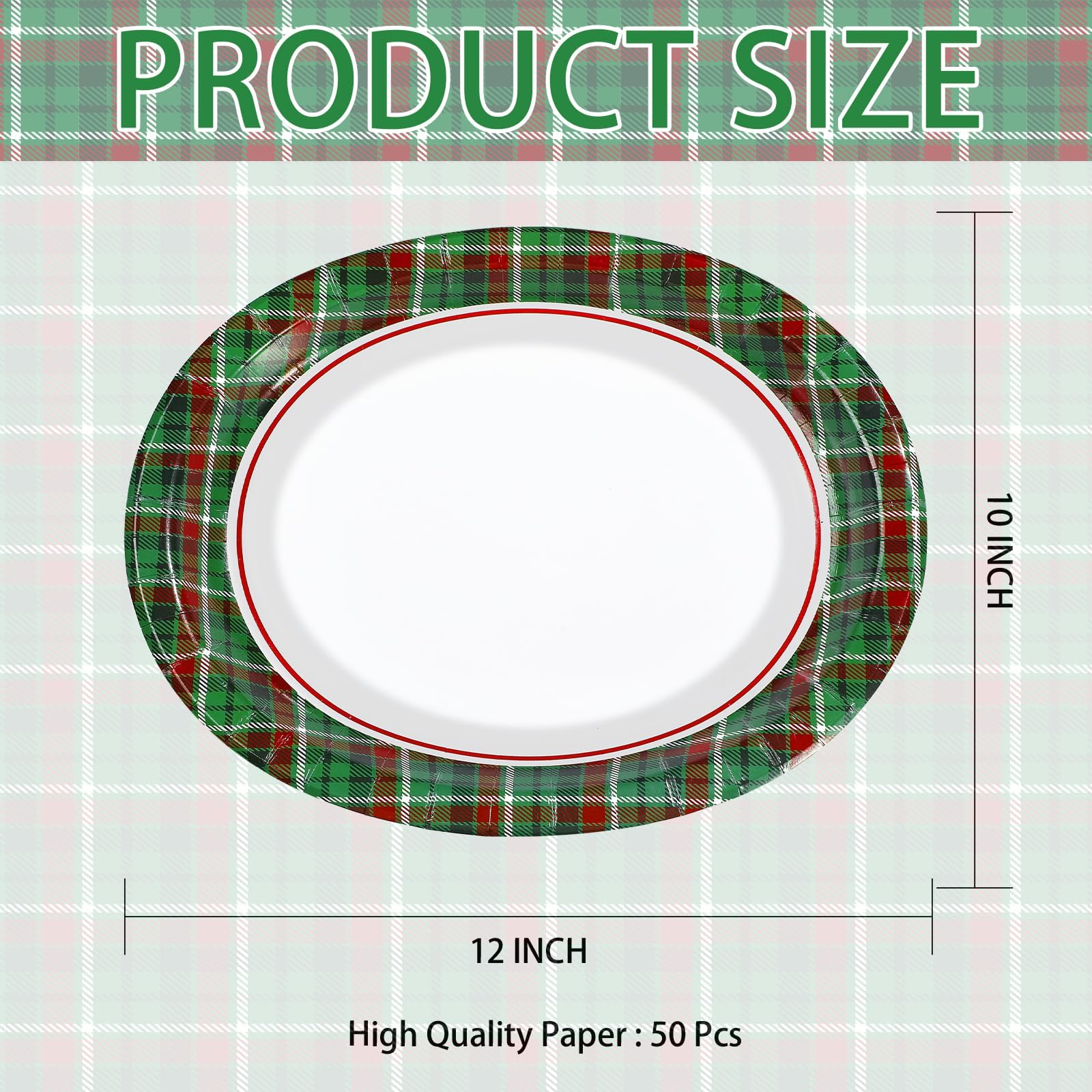 50 pcs Christmas disposable oval paper plates, 10 x 12 inches large size.