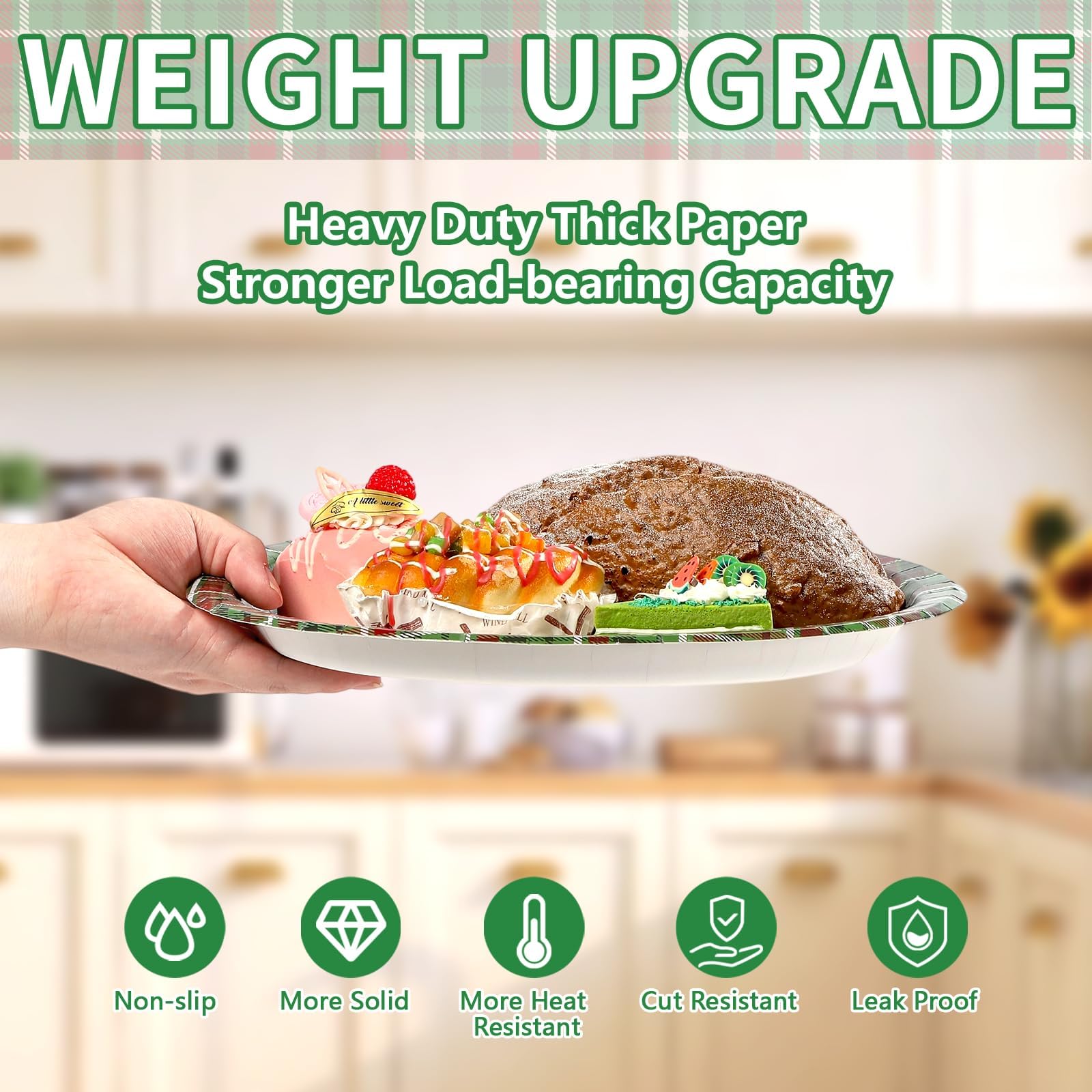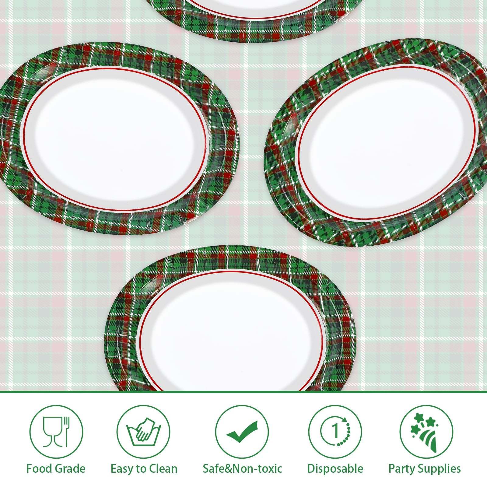 Elevate your holiday table with Grencian's 50Pcs Green Red Gingham Oval Paper Plates. Featuring a classic Christmas plaid theme in timeless green and red, these oval plates instantly bring the warmth and cheer of the season to your festivities. More than just durable and convenient, their charming design creates a strong festive atmosphere, making your Christmas dishes look even more delightful. Perfect for holiday parties, family dinners, and all your seasonal gatherings, these plates are an effortless way to enhance your dining experience and create lasting memories.